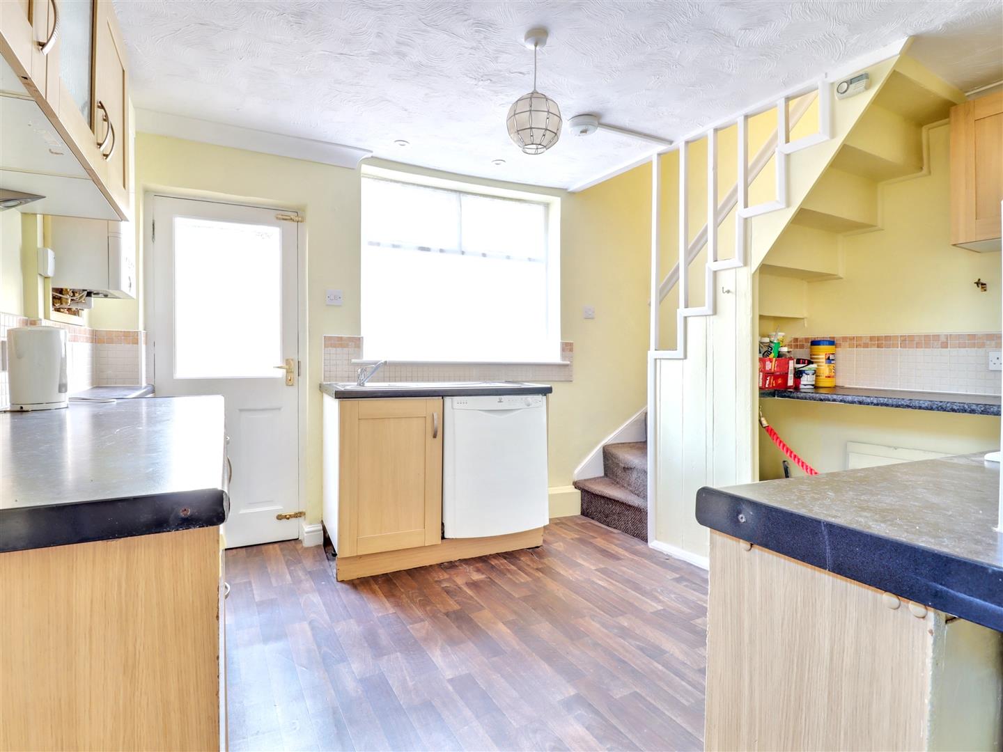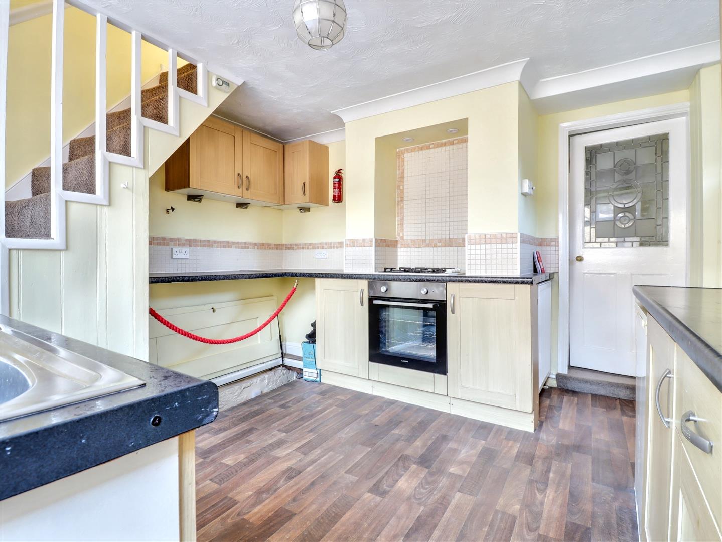 Kitchen - 3.5 x 3.6 (11'5" x 11'9") - Wooden door to the side aspect to enter the property, second wooden door with glass panel to the rear aspect leading into courtyard. Single glazed window, range on base and wall units, stainless steel sink basin with drainer and mixer tap. Electric oven with gas hob. Access to living room, cellar and stairway to first floor.