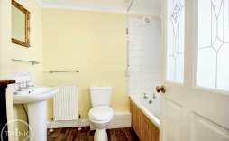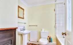 Bathroom - 2.2 x 1.7 (7'2" x 5'6") - Cast Iron feature fireplace, stand alone sink basin with splash back. WC, panel bath with electric show and splash back.