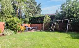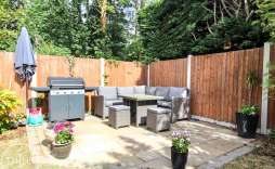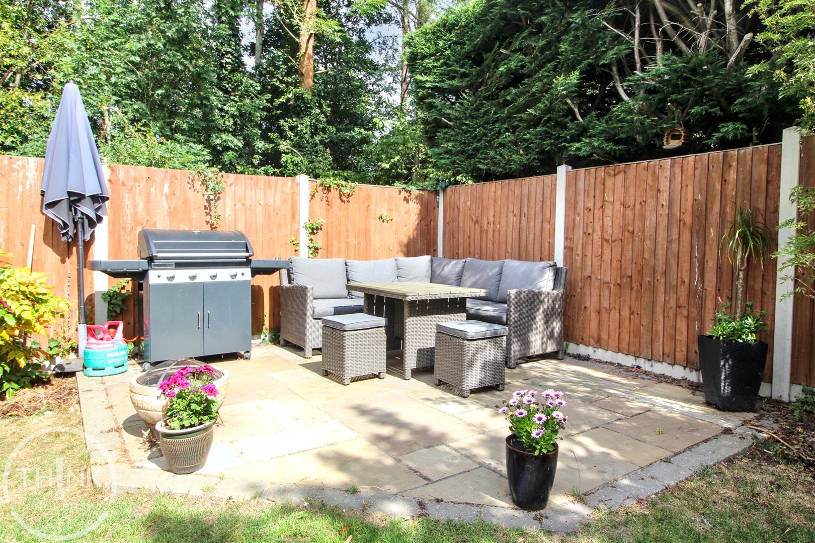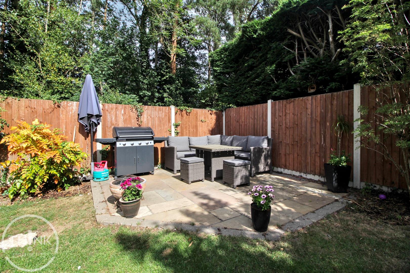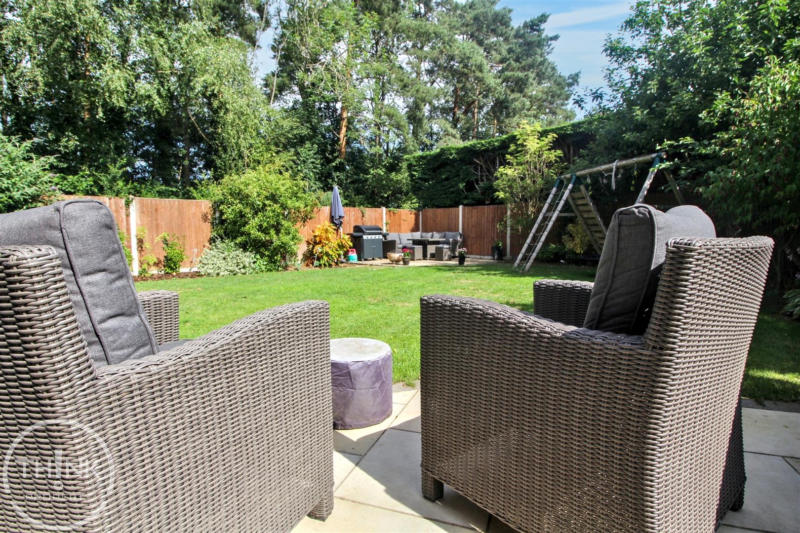 Outside Rear - Backing onto woodland, private and fully enclosed garden mainly laid to lawn with two Indian sandstone seating areas, access to the side, side area with storage shed laid with slate. Timber fencing and a range of mature plants, trees and shrubs.