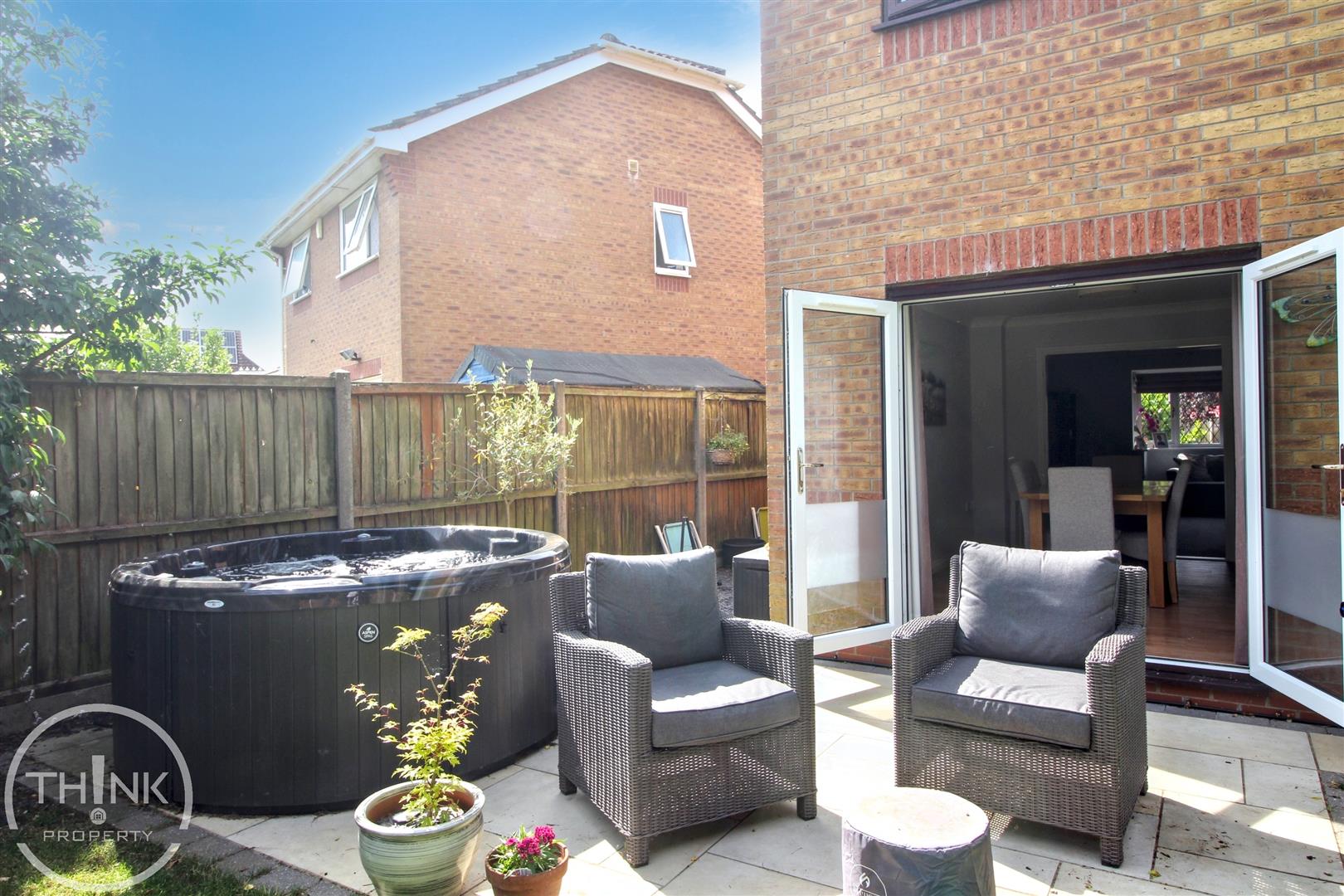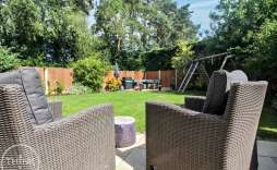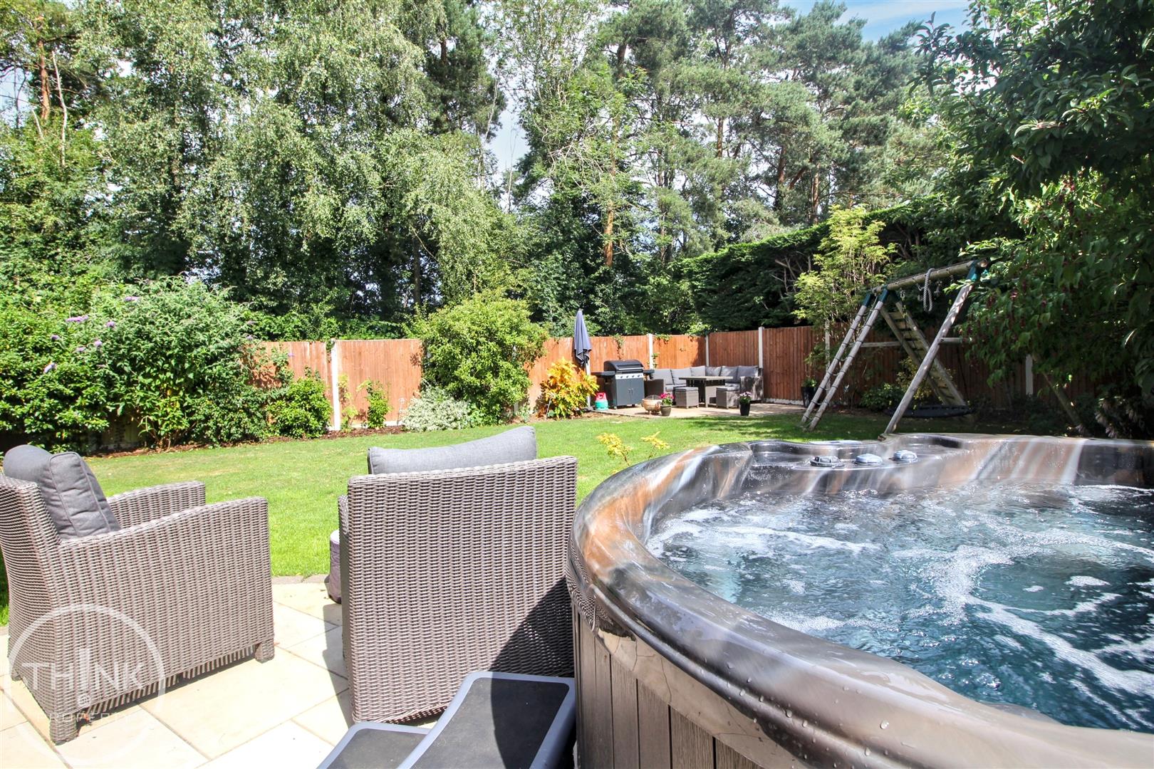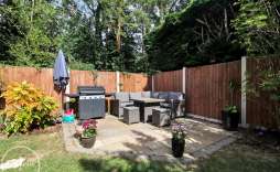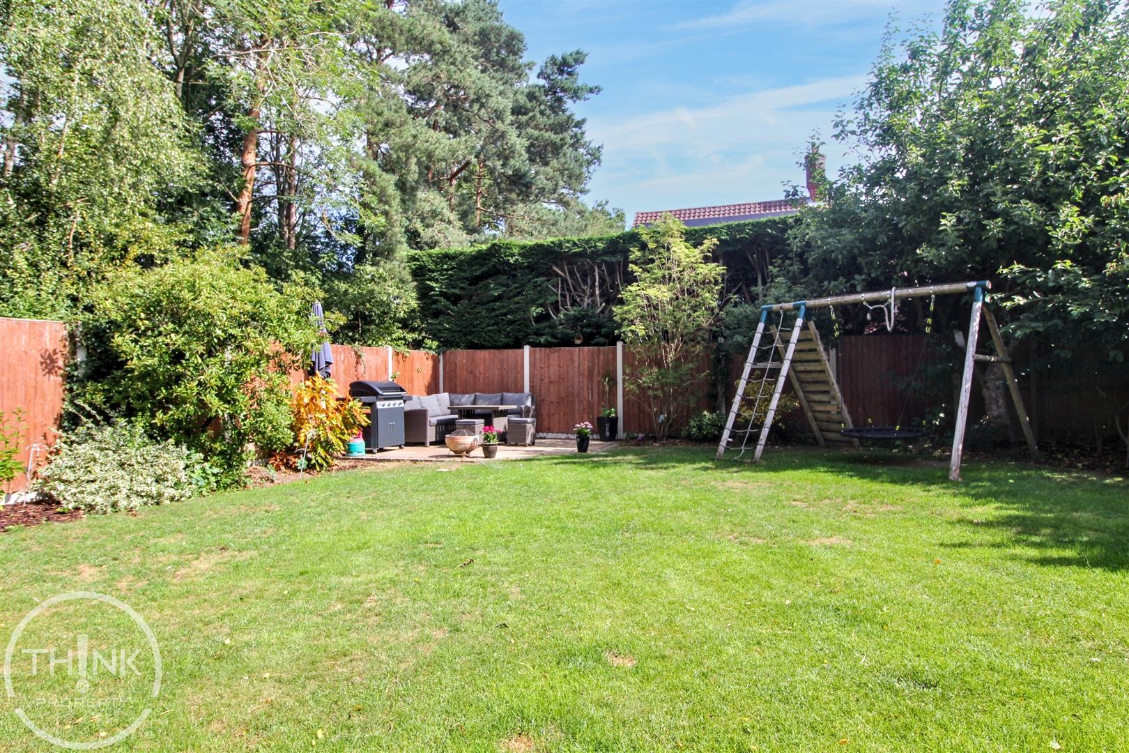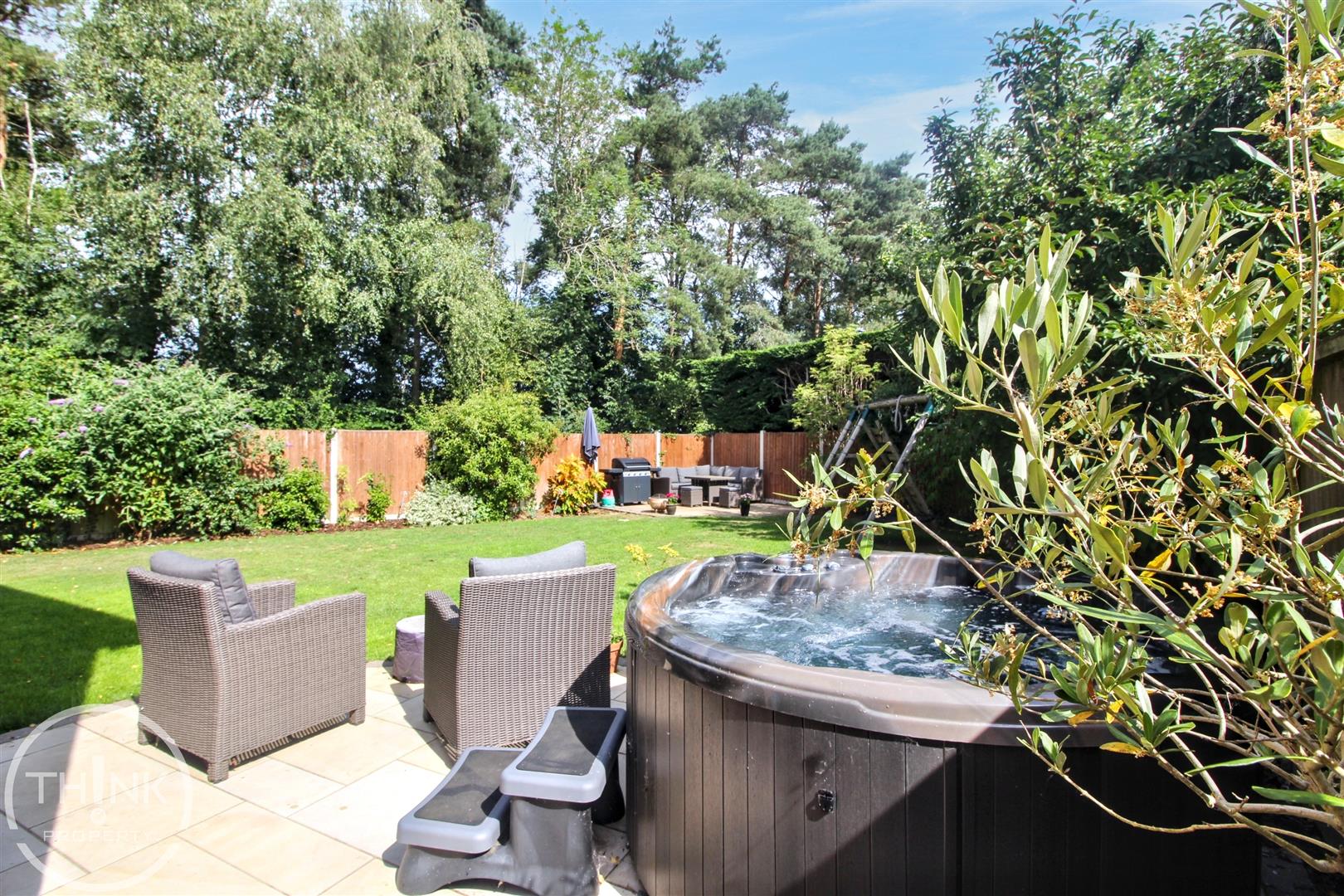 Outside, the property is equally impressive. A spacious driveway accommodates multiple vehicles and provides access to the garage. The private rear garden is a true sanctuary, backing onto serene woodland, ensuring a peaceful atmosphere. Mainly laid to lawn, the garden features a fantastic Indian sandstone patio, perfect for al fresco dining, along with a further seating area at the rear, ideal for enjoying the tranquil surroundings. The garden is enclosed by timber fencing and adorned with a variety of mature plants, trees, and shrubs, enhancing its charm and privacy.