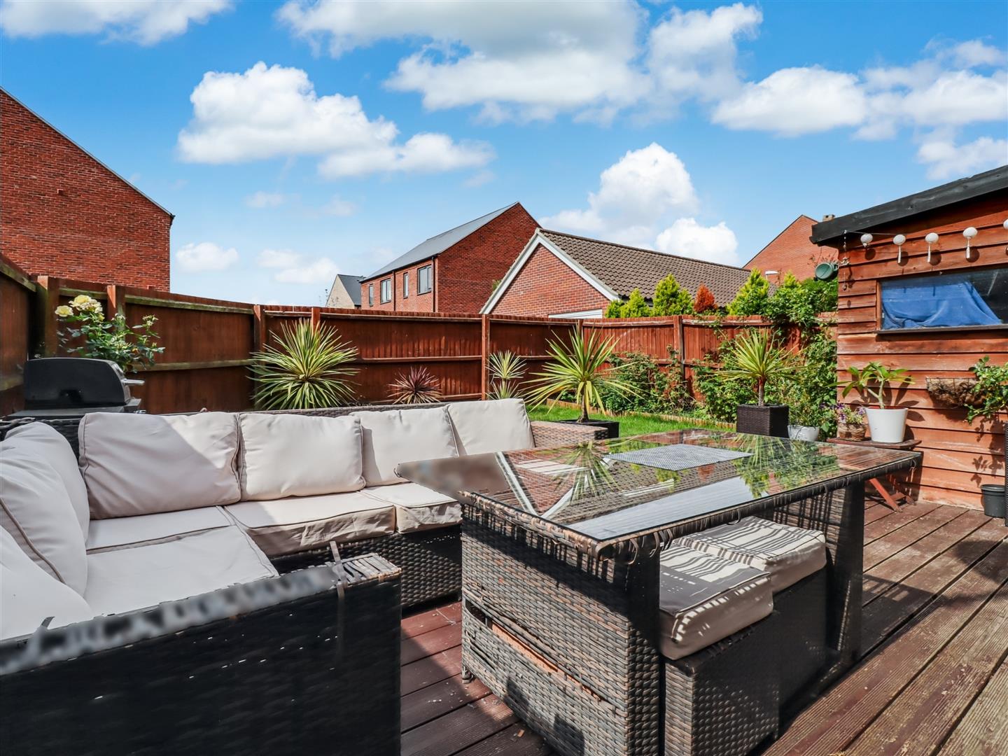 Outside - Garden and driveway to the front leading to the garage. Door to front leading through to timber shed with door to the garden. The rear garden has a patio area leading through to the lawned area. Enclosed and a generous size so perfect for a growing family or entertaining guests.