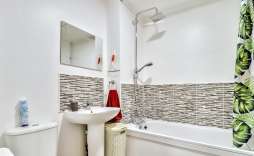Family Bathroom - Sealed unit double glazed window, panel bath with screen and shower, wc and wash hand basin.