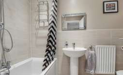 Family Bathroom - Panel bath, wc and wash hand basin, radiator, splashbacks.