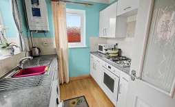 Kitchen - 2.57m x 2.24m (8'5 x 7'4) - Fitted with a range of wall base and drawer units, with worktop over, sink unit, gas hob, electric oven, upvc window to rear, upvc window to side and wall mounted gas boiler.