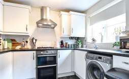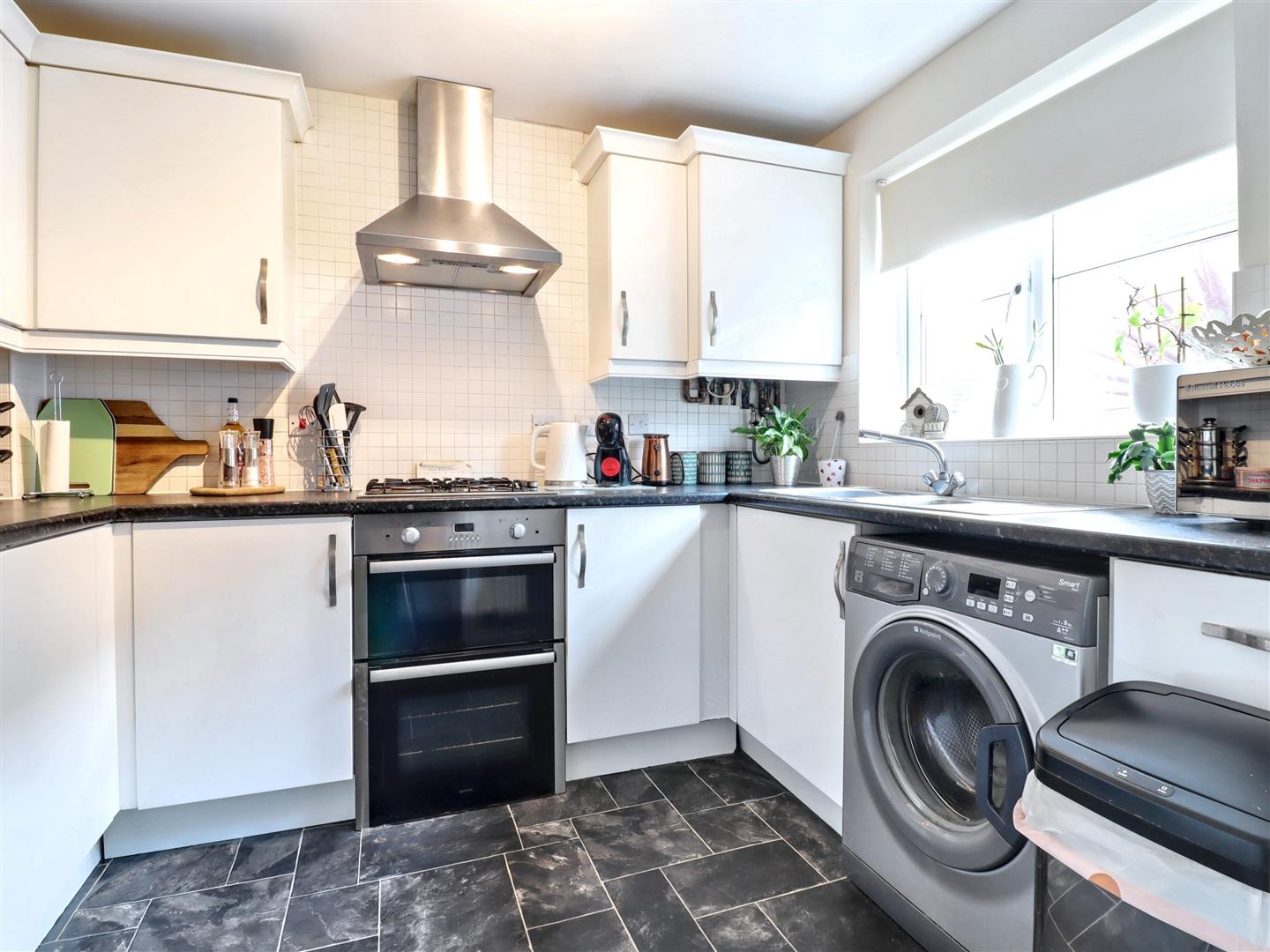 Kitchen - 2.97m x 2.34m (9'9 x 7'8) - Sealed unit double glazed window to front, fitted range of base and wall mounted units, integrated electric double oven, gas hob, extractor fan, integrated fridge/freezer, dishwasher, space for washing machine, sink and drainer, vinyl flooring.