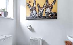 Cloakroom - Sealed unit double glazed window to front, WC, washing basin, laminate flooring, radiator.