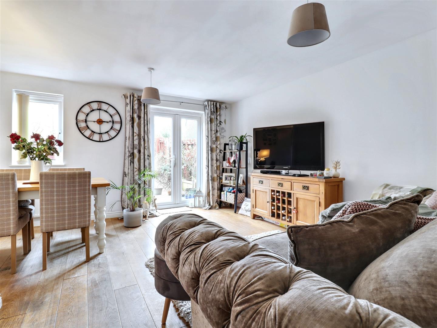 Sitting Room/Dining Room - 4.65m max x 4.42m max (15'3 max x 14'6 max) - Sealed unit double glazed window and French doors to rear garden, storage, laminate flooring, radiator.