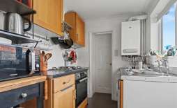 Kitchen - 2.46m x 1.85m (8'1 x 6'1) - Sealed unit double glazed door and window to the side, range of base and wall mounted units, sink, integrated hob and oven. Space and plumbing for washing machine. Door to the bathroom.