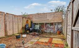 Outside - Gated garden to the front, pathway to entrance. Access to the passage way round to the rear garden through the neighbours, this house has abi sected rear garden to one neighbour. Enclosed by panel fencing gate to neighbouring property, mostly patio.
