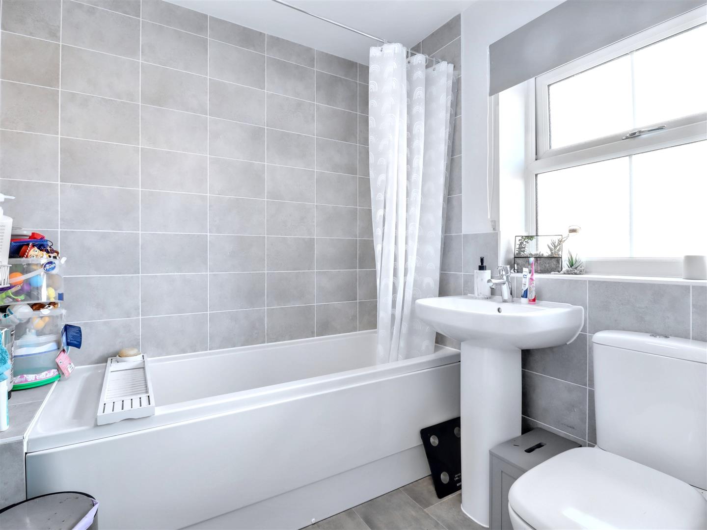 Family Bathroom - Sealed unit double glazed window to rear, panel bath with mixer tap/shower attachment and glass shower screen. Splash backs. WC and pedestal wash hand basin and radiator.