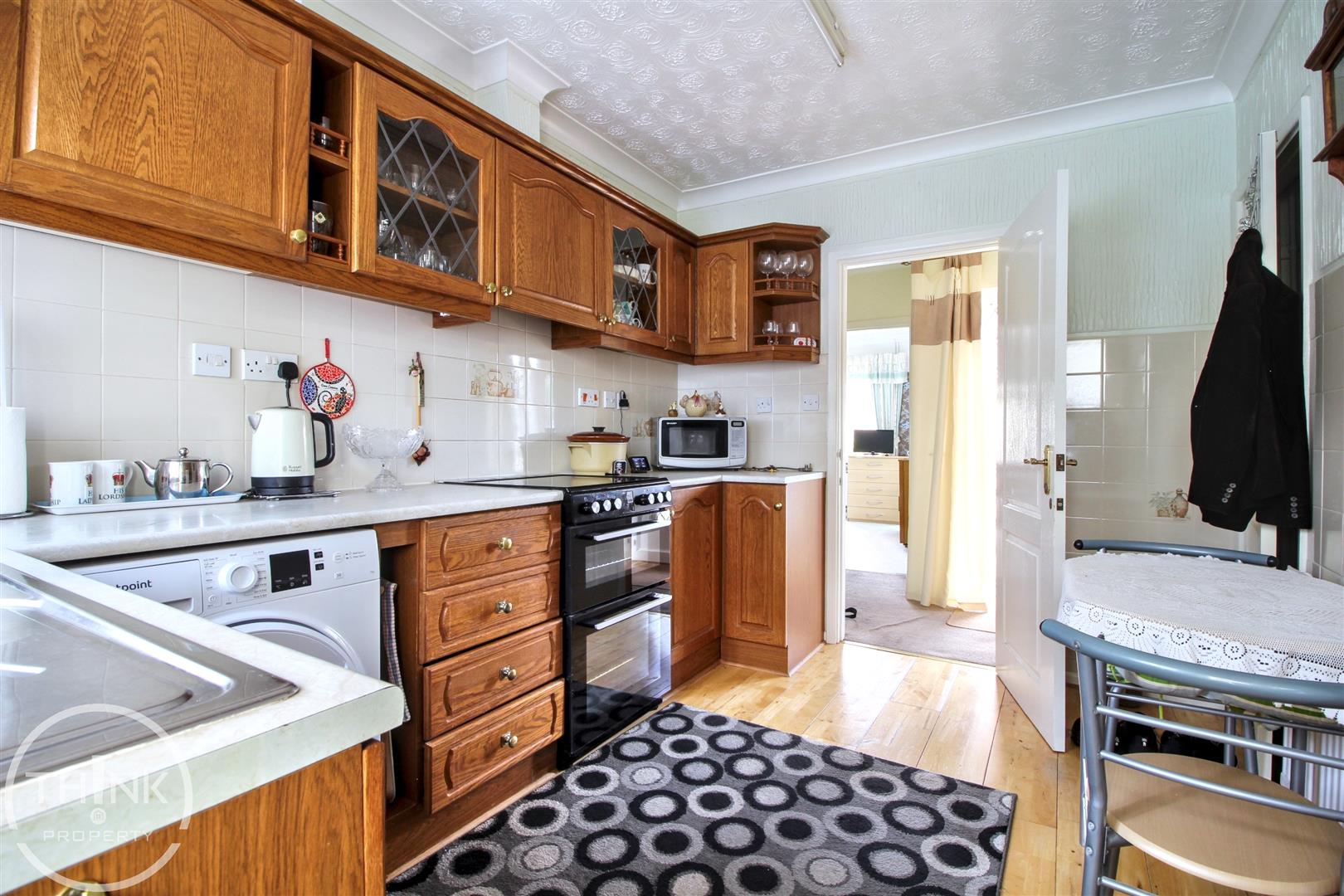 Kitchen/Breakfast Room - 3.49 x 3.03 (max) (11'5" x 9'11" (max)) - Wood flooring, range of fitted base and wall units with work surfaces over, space for free standing cooker, plumbing and space for washing machine, space for fridge/freezer, double glazed window to rear, door to conservatory.