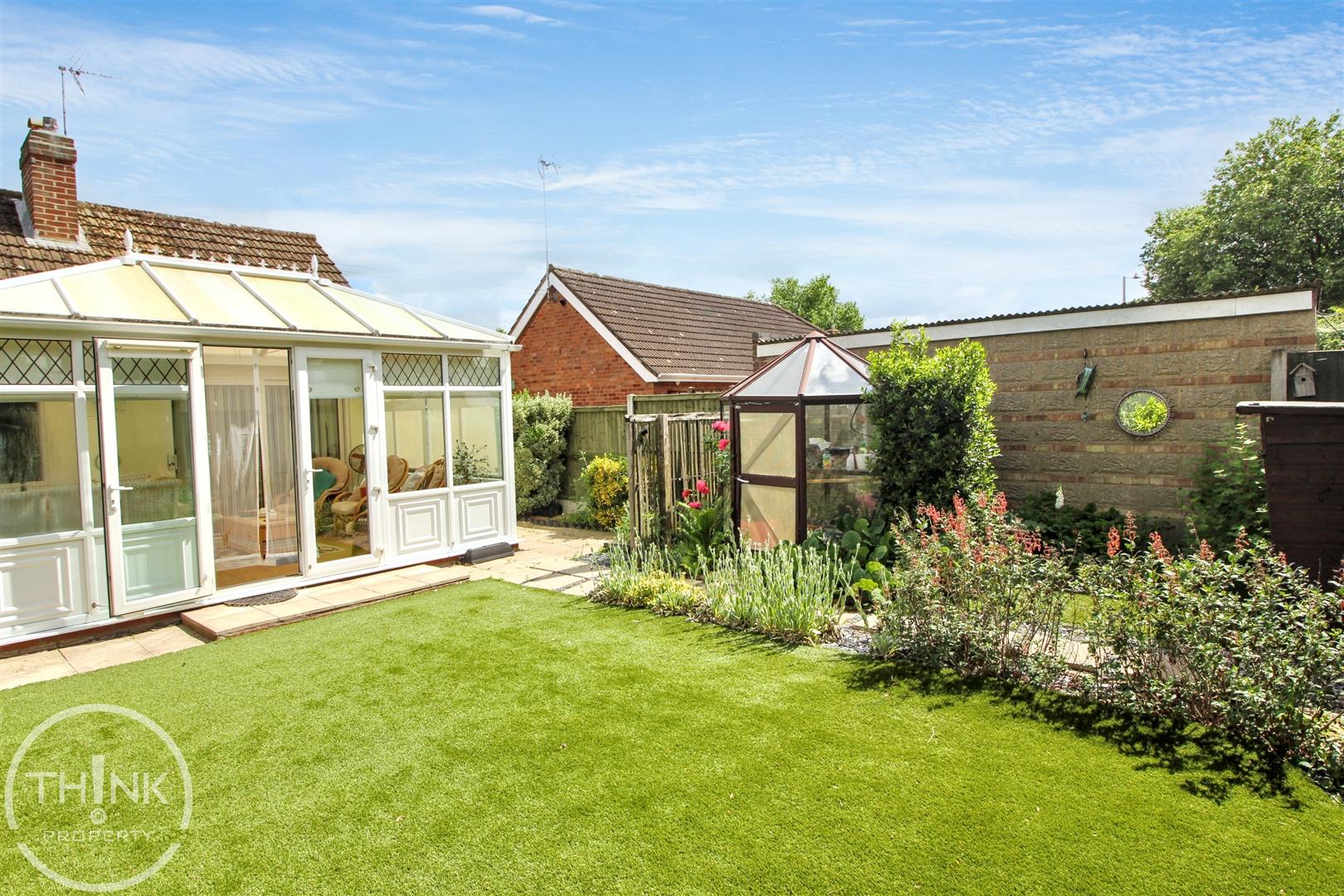 The bungalow features two inviting, double bedrooms, ideal for restful nights, and a modern shower room that adds to the convenience of this home. Outside, the enclosed rear garden boasts artificial grass, ensuring a low-maintenance outdoor space, complemented by a paved patio area, perfect for al fresco dining or enjoying a morning coffee. Additionally, a timber shed and greenhouse provide ample storage and gardening opportunities.