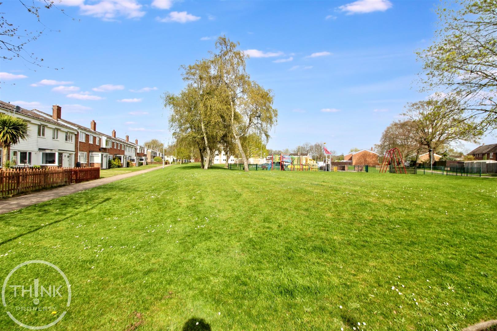 Outside - To the front is an open garden space with views across the green and the park.