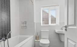 Family Bathroom - Sealed unit double glazed window to the side, panel bath with shower, wc and wash hand basin, splash backs and radiator.