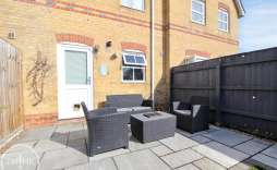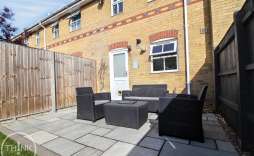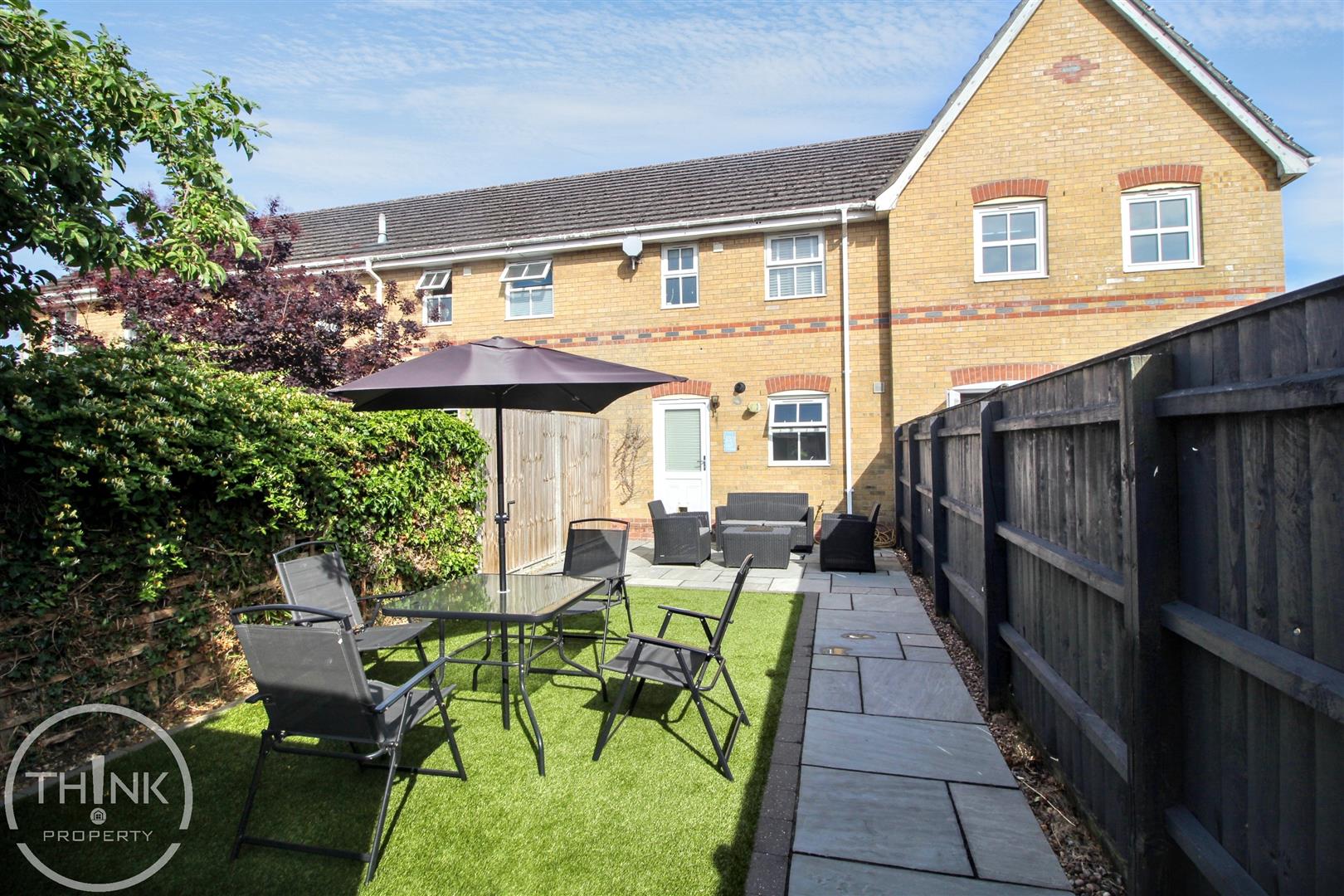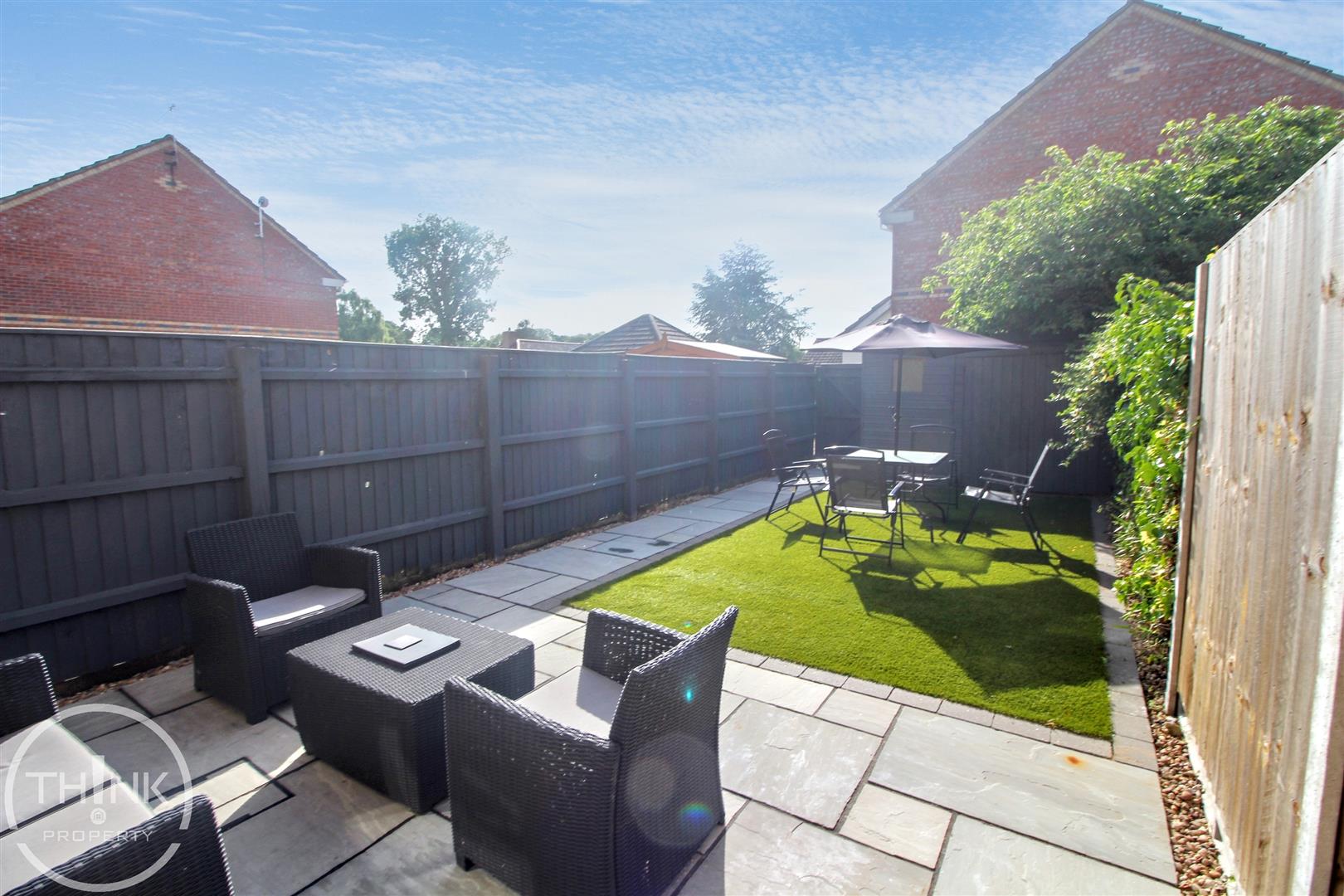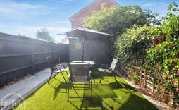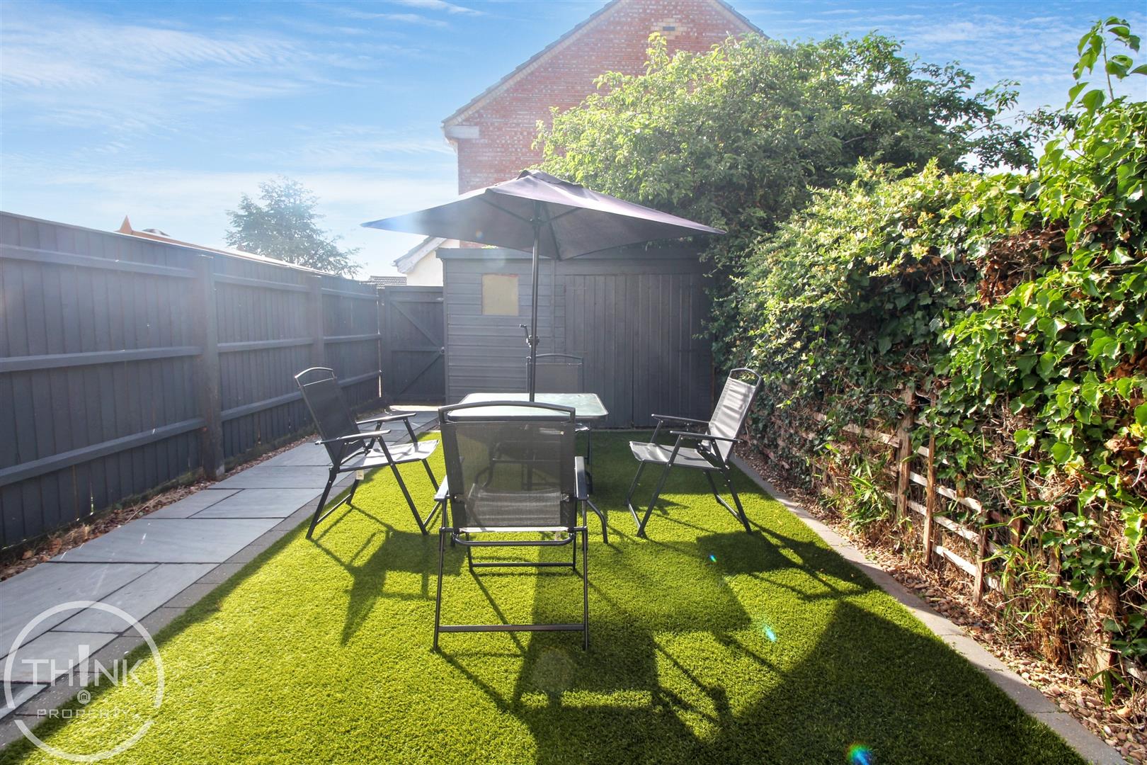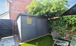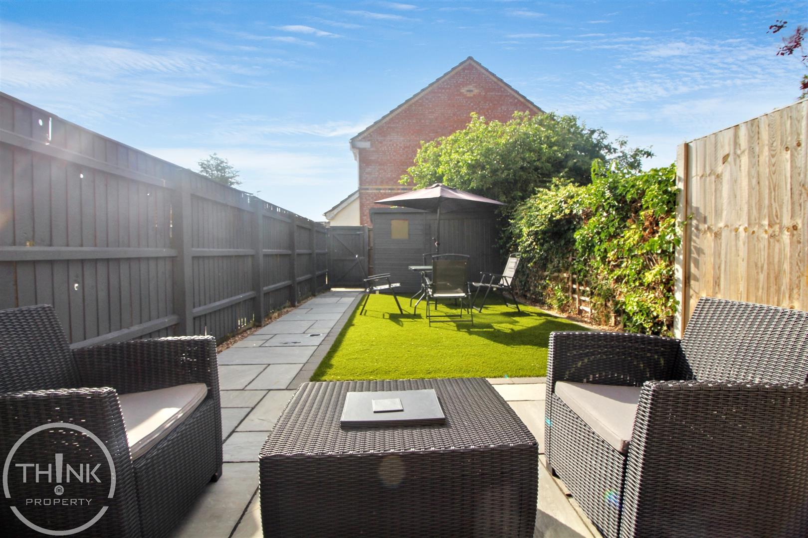 The outdoor space is equally impressive, with a recently landscaped rear garden that boasts an elegant Indian sandstone patio and low-maintenance artificial grass. This serene area is enclosed by timber fencing, offering privacy and a perfect setting for outdoor gatherings or quiet moments. Additionally, a timber storage shed provides practical storage solutions for your gardening tools or outdoor equipment.