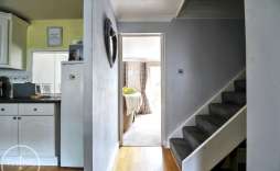 Entrance Hall - Laminate wood flooring, radiator, storage cupboard, stairs to first floor, under stairs storage, opening to kitchen, opening to lounge, door to W/C.