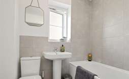 Family Bathroom - Sealed unit double glazed window to the front, panel bath, wc and wash hand basin. Splash backs.