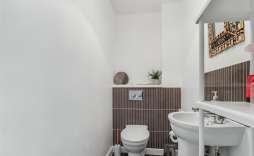 Wc - 1.0m x 2.1m - Low level WC, pedestal wash hand basin, splash back tiles, radiator with towel rail and extractor.