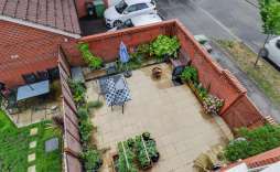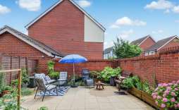 Outside, the patio garden offers a Mediterranean feel, requiring low maintenance, allowing you to personalise it with your favourite potted plants. The extra-width garage provides ample storage, and there is off-road parking available in front, adding to the convenience of this lovely home.