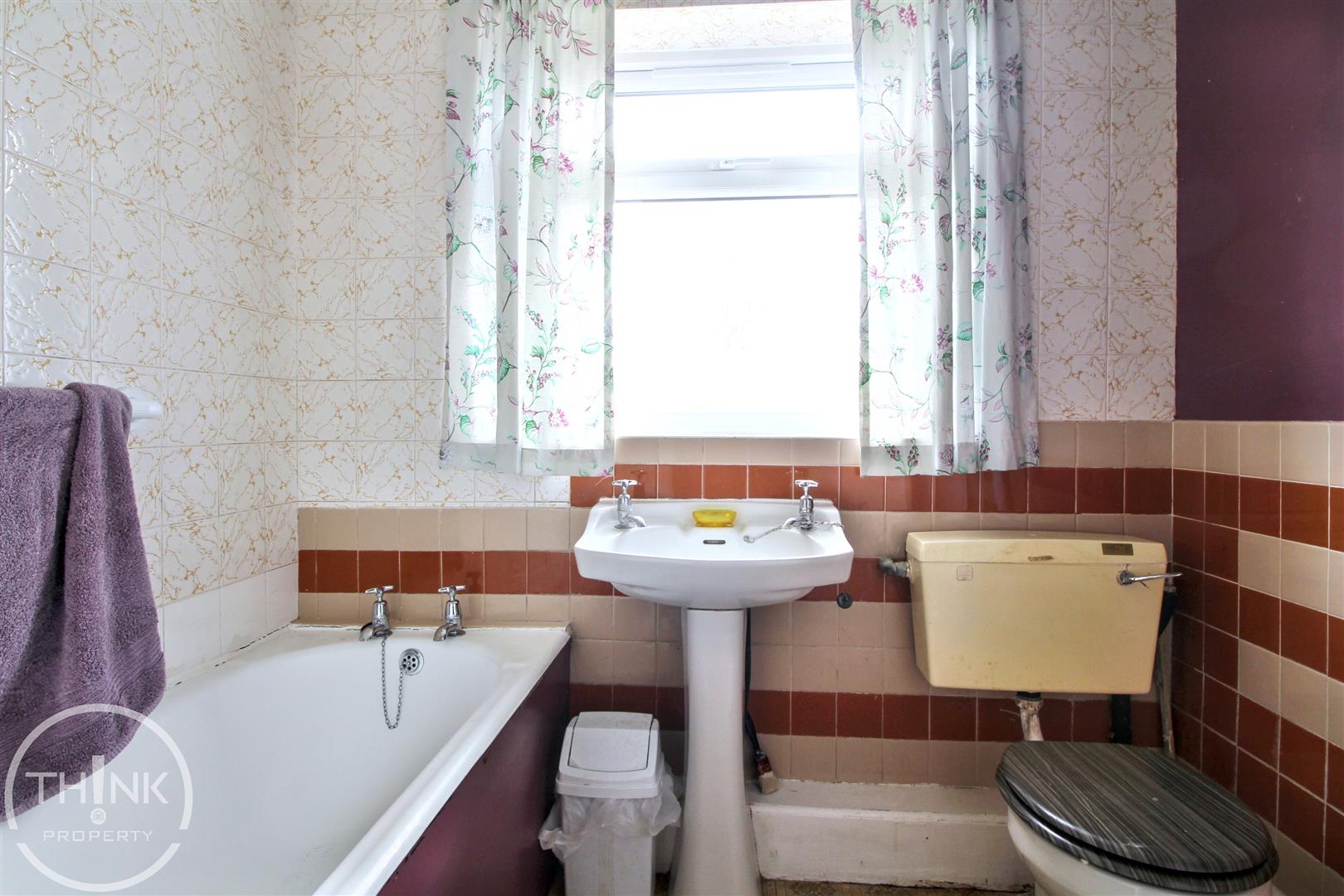 Bathroom - Tiled flooring, panelled bath, low level W/C, pedestal wash basin, storage cabinet, obscured double glazed window to rear.