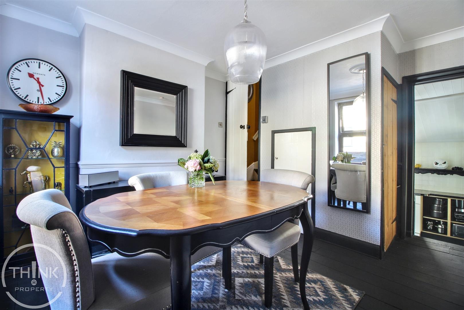 Dining Room - Wood flooring, stairs to first floor, under-stairs storage, radiator, double-glazed window to front, door to lounge, opening to kitchen.