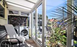 Inside, the home currently features two double bedrooms, two reception rooms, a bright conservatory, and a private, low-maintenance courtyard garden.