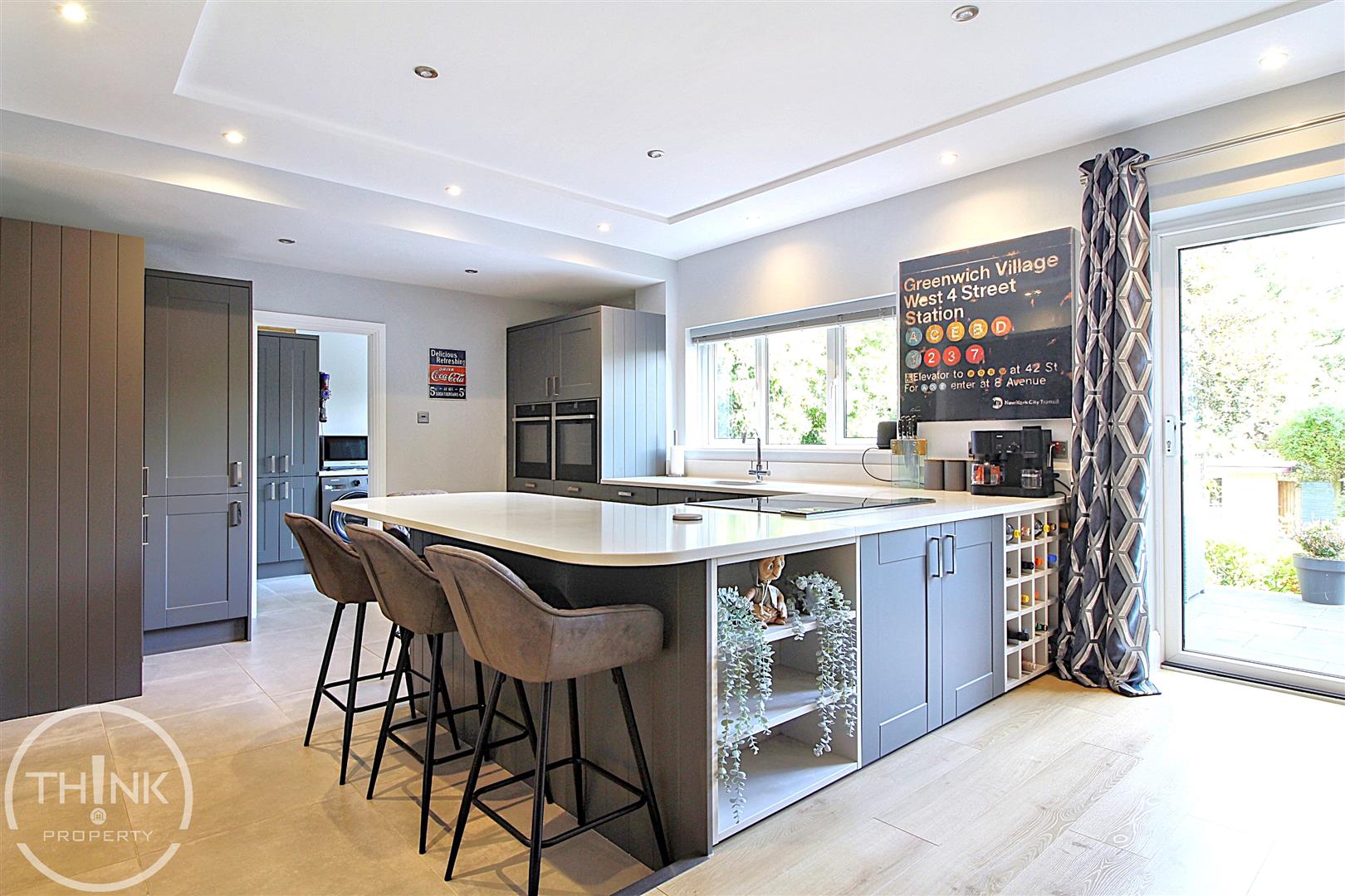 Porcelain floor tiles, range of Wren fitted base and wall units with Quartz work surfaces over, integrated Neff appliances including, double oven, induction hob and dishwasher. There is also integrated AEG fridge/freezer, double glazed window to rear, sliding doors to rear garden, opening to utility.