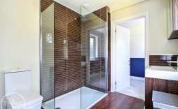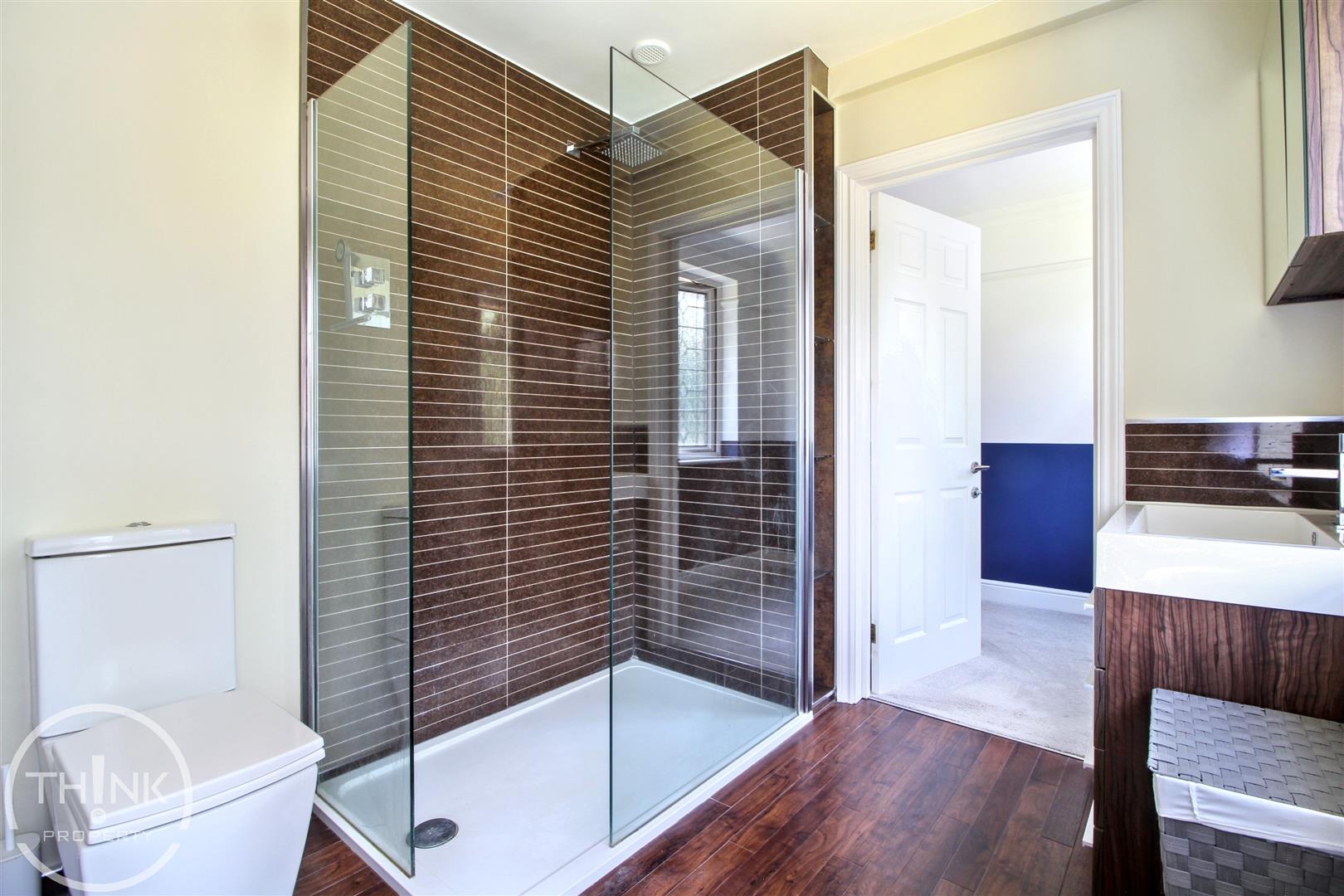 En Suite - Vanity sink unit, shower cubicle, low level W/C, radiator, double glazed window to rear.