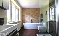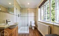 Family Bathroom - LVT flooring, free standing bath, low level W/C, shower cubicle, vanity sink unit, radiator, double glazed window to front, heated towel rail.