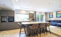 The heart of the home is undoubtedly the impressive Wren design kitchen, equipped with high-quality NEFF appliances, which seamlessly flows into a dining and family area, creating a perfect space for entertaining guests or enjoying family meals. A utility room and cloakroom add to the practicality of this well-thought-out layout.