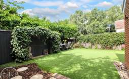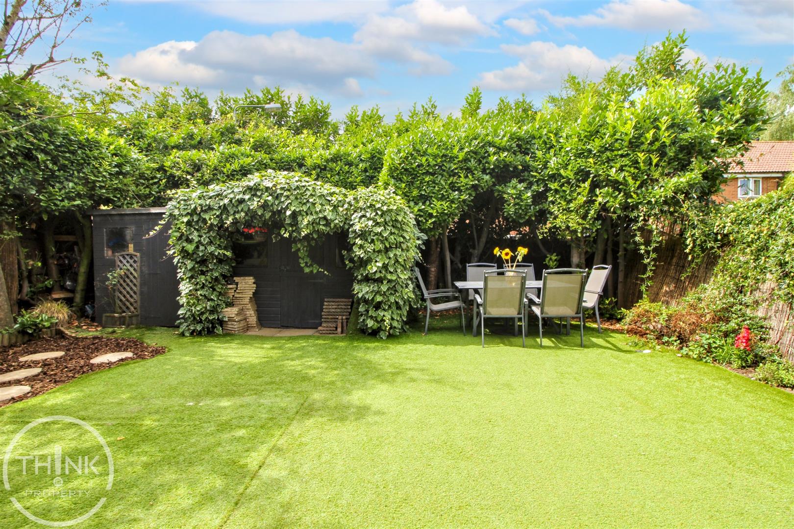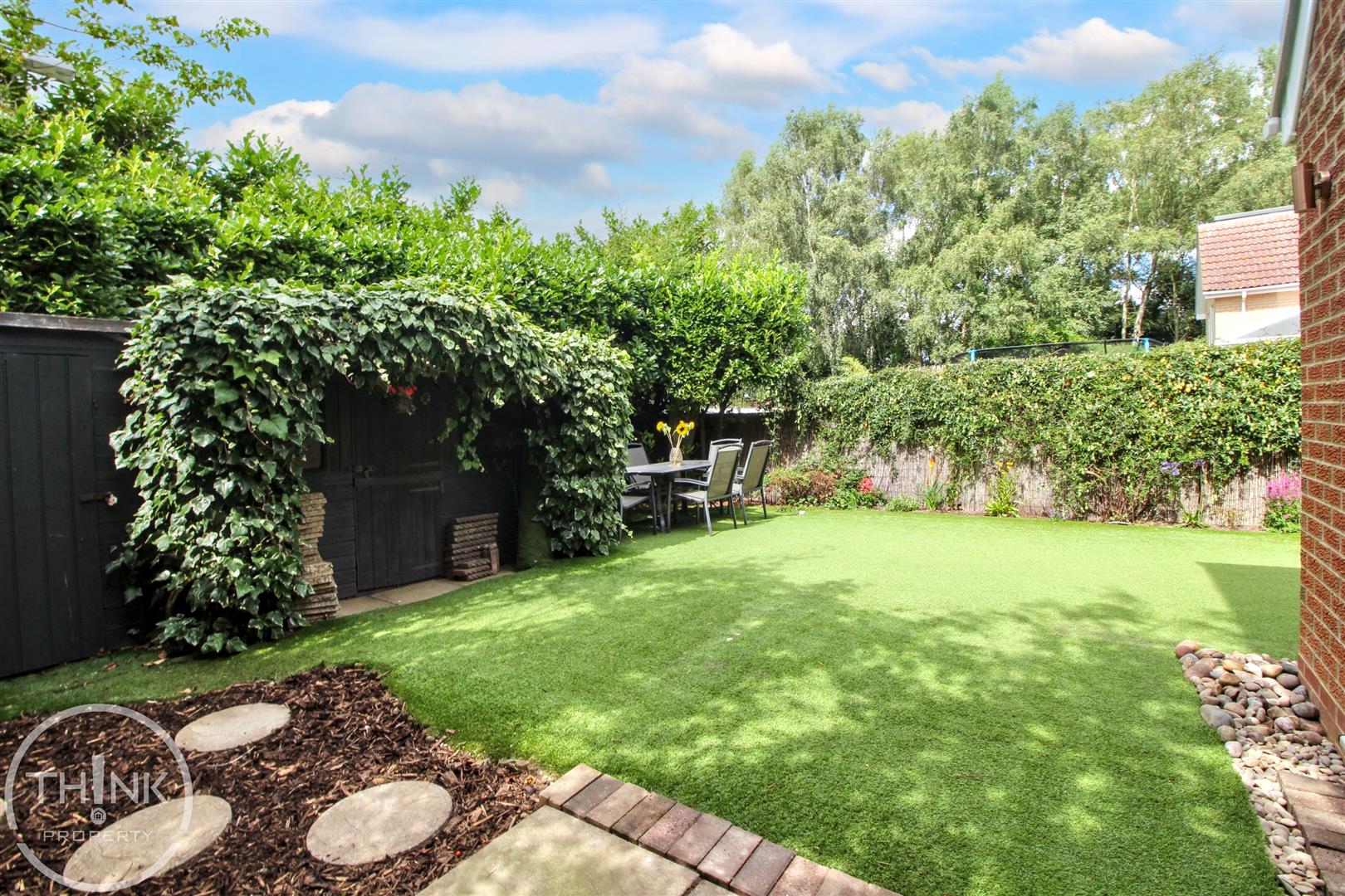 The rear garden is private and enclosed. Mainly laid with artificial grass and a hard standing patio area, large timber framed storage shed, a BBQ area and a range of mature plants, trees and shrubs.
