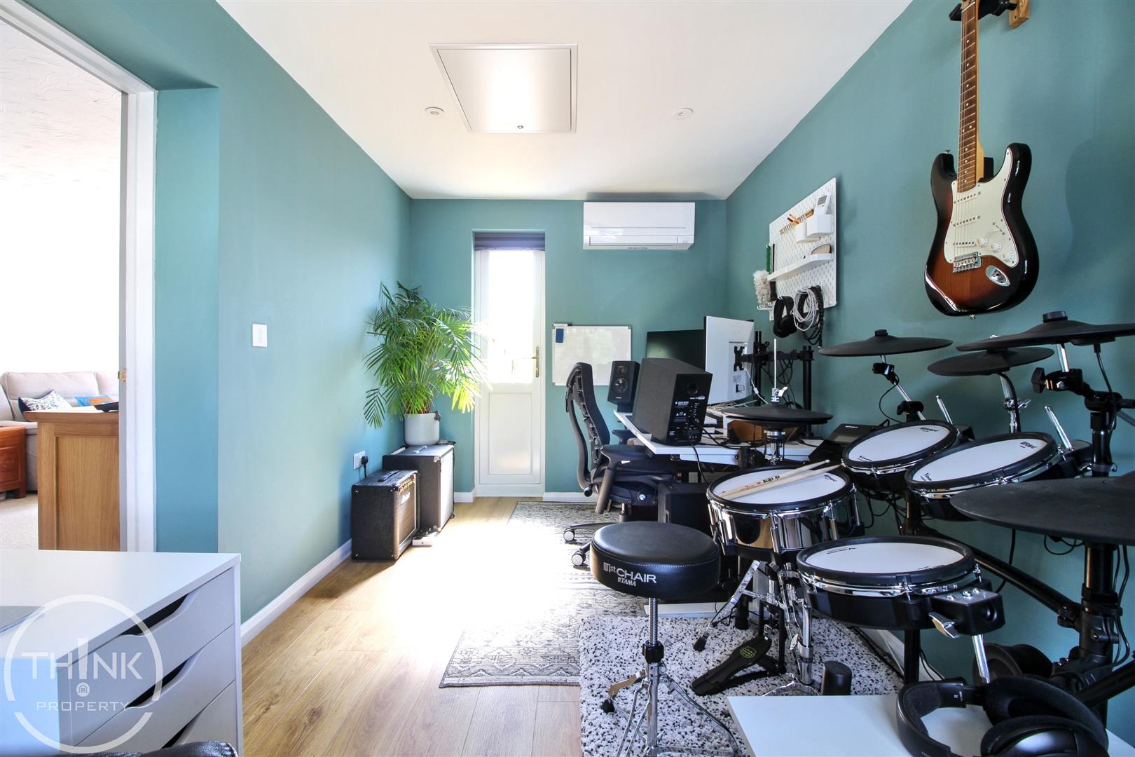 Reception Room - 4.97 x 2.39 (16'3" x 7'10") - Garage conversion, laminate wood flooring, double glazed window to front, door to rear garden, air conditioning and heating unit.