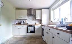Kitchen/Breakfast Room - 3.27 x 2.74 (10'8" x 8'11") - Vinyl flooring, range of fitted base and wall units with work surfaces over, integrated oven hob and extractor fan, plumbing and space for washing machine, plumbing and space for dishwasher, space for free standing fridge freezer, tiled splash backs, double glazed window to front.
