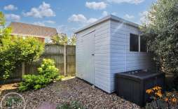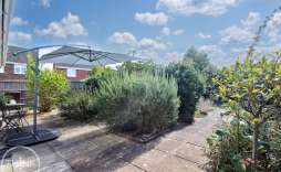 The rear is private and enclosed with a hard standing seating area and a range of mature plants, trees, herbs and shrubs, timber fencing and a timber framed storage shed.