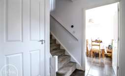 Upstairs, the property features three well-proportioned bedrooms, all accessible from the landing. The master bedroom benefits from an en suite, ensuring privacy and comfort, while a stylish bathroom serves the remaining bedrooms.