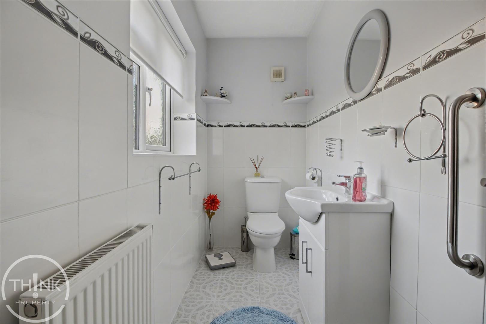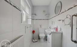 Cloakroom - Low level W/C, hand wash basin, radiator.