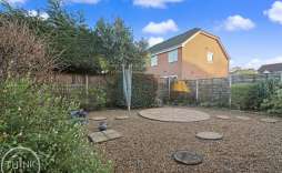 Rear garden is low maintenance and mainly laid to shingle with a range of plants and shrubs.