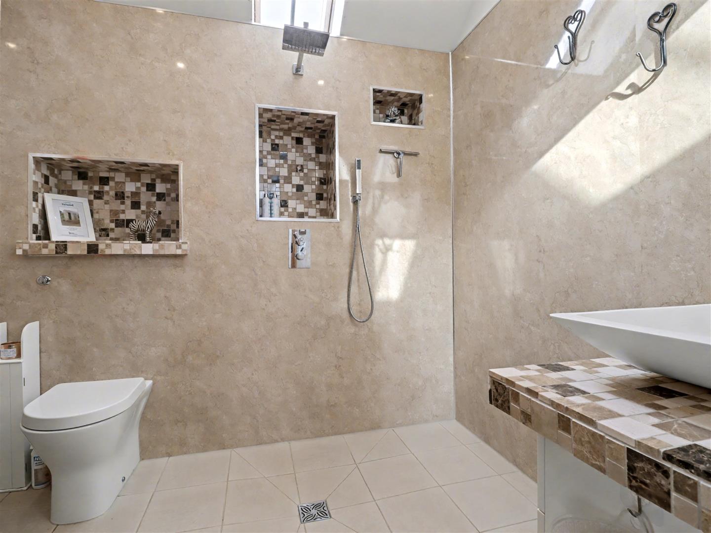 Bathroom - A standout feature of this room is the oversized walk-in shower, complemented by a hand wash basin and WC, combining style with practical luxury.
