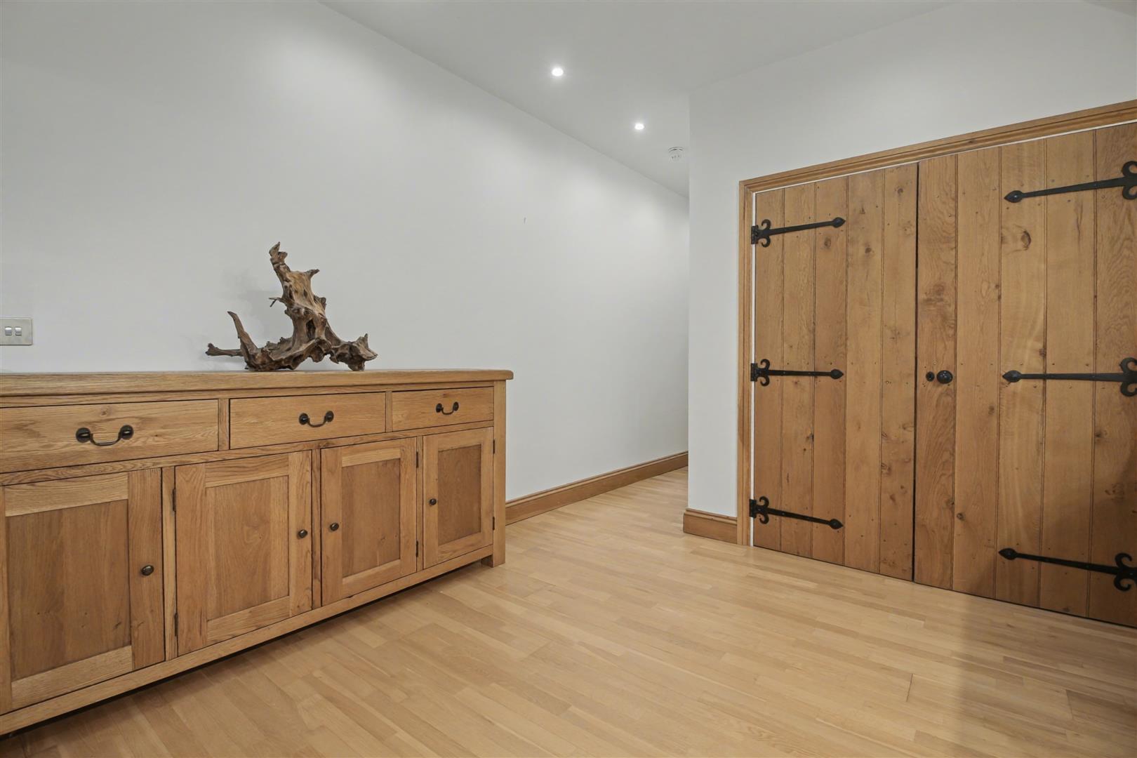 Inner Hall - Handmade ledge-and-brace oak doors with traditional door furniture lead to each of the four bedrooms and the shower room. A sealed unit double-glazed window to the side brings in natural light, while the engineered oak flooring adds both warmth and durability to the space.