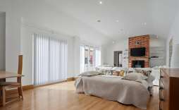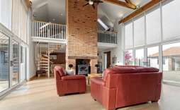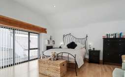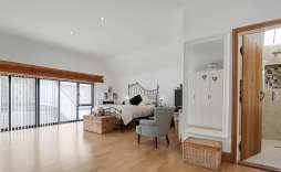 Upstairs, a mezzanine library/study overlooks the main living area, creating a wonderful space for work, reading or quiet relaxation. Two further bedrooms include the bright and airy main suite with striking feature windows and en suite, along with an additional bathroom featuring an oversized shower.