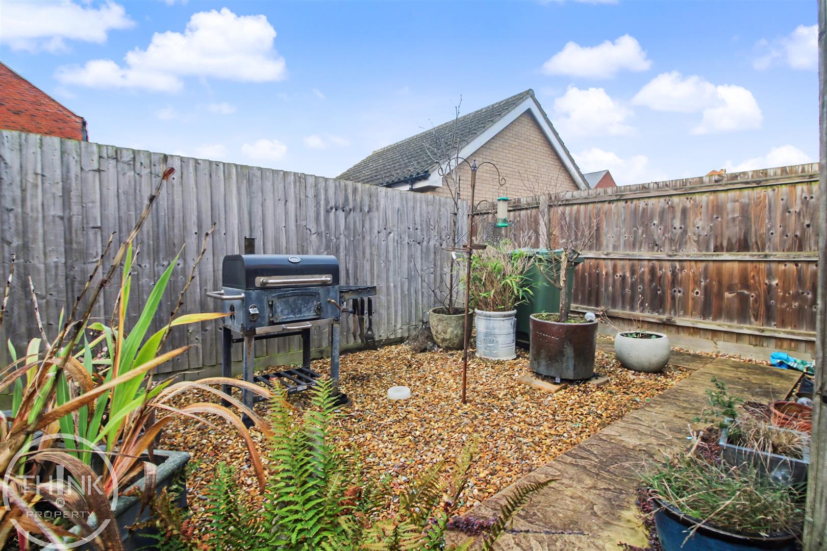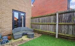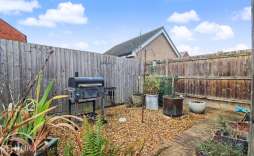 Outside - Enclosed rear garden with artificial grass, hard standing seating area, shingled section and access to the garage and parking space.
