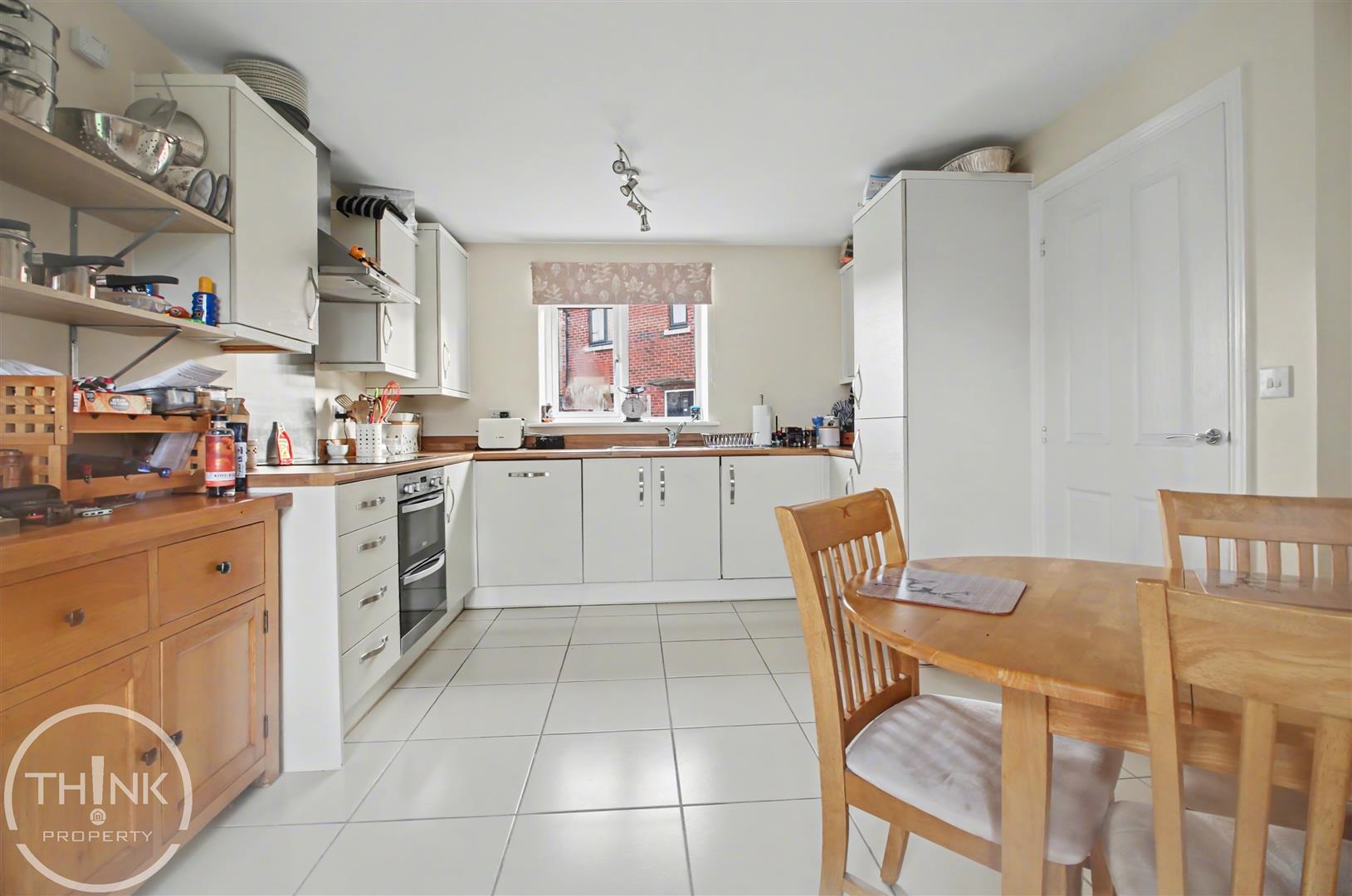 Kitchen/Dining Room - 4.70 x 3.25 (15'5" x 10'7") - Tiled flooring, range of fitted base and wall units with work surfaces over, integrated oven, hob and extractor, integrated dishwasher, integrated washing machine and fridge freezer, double glazed window to front, doors to rea garden, radiator.