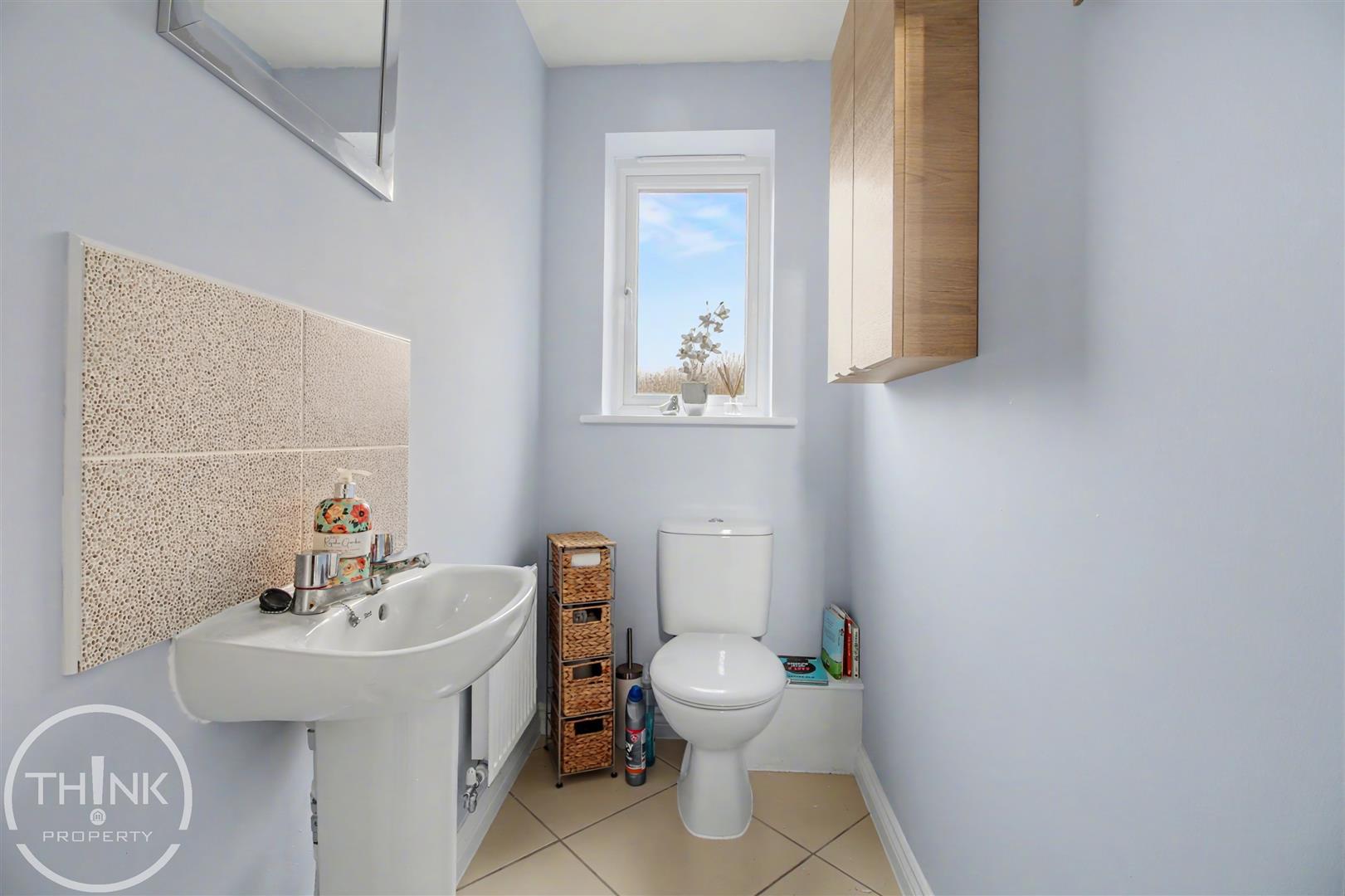 Cloakroom - Tiled flooring, low level W/C, wash basin, radiator, double glazed window to rear.