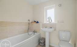 Bathroom - Panelled bath, low level W/C, pedestal wash basin, radiator, obscured double glazed window to rear.