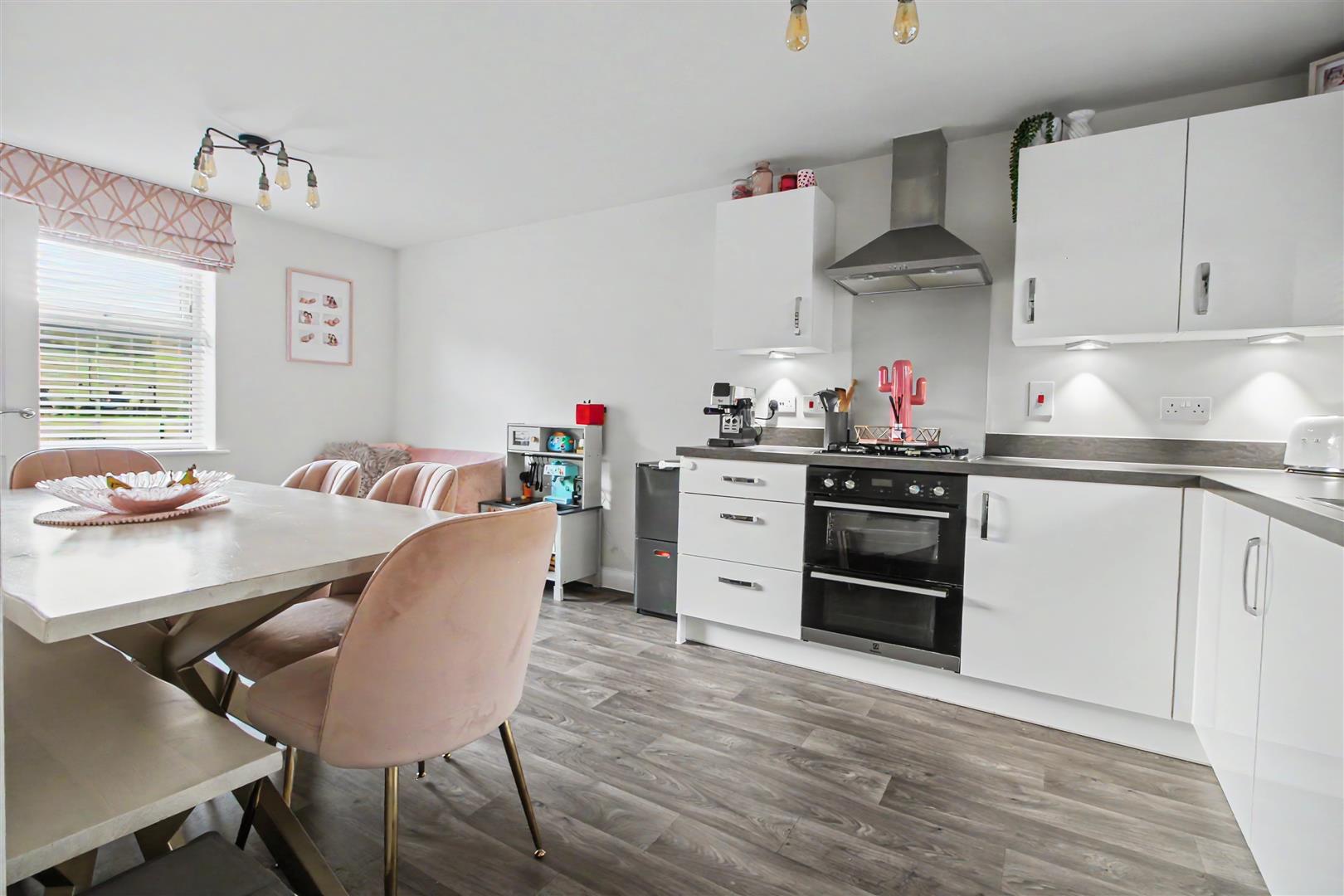 Kitchen/Dining Room - 5.46 x 2.89 (17'10" x 9'5") - Laminate wood flooring, range of fitted base and wall units with work surfaces over, integrated oven, hob and extractor, integrated dishwasher, double glazed window to front and rear, door to utility.
