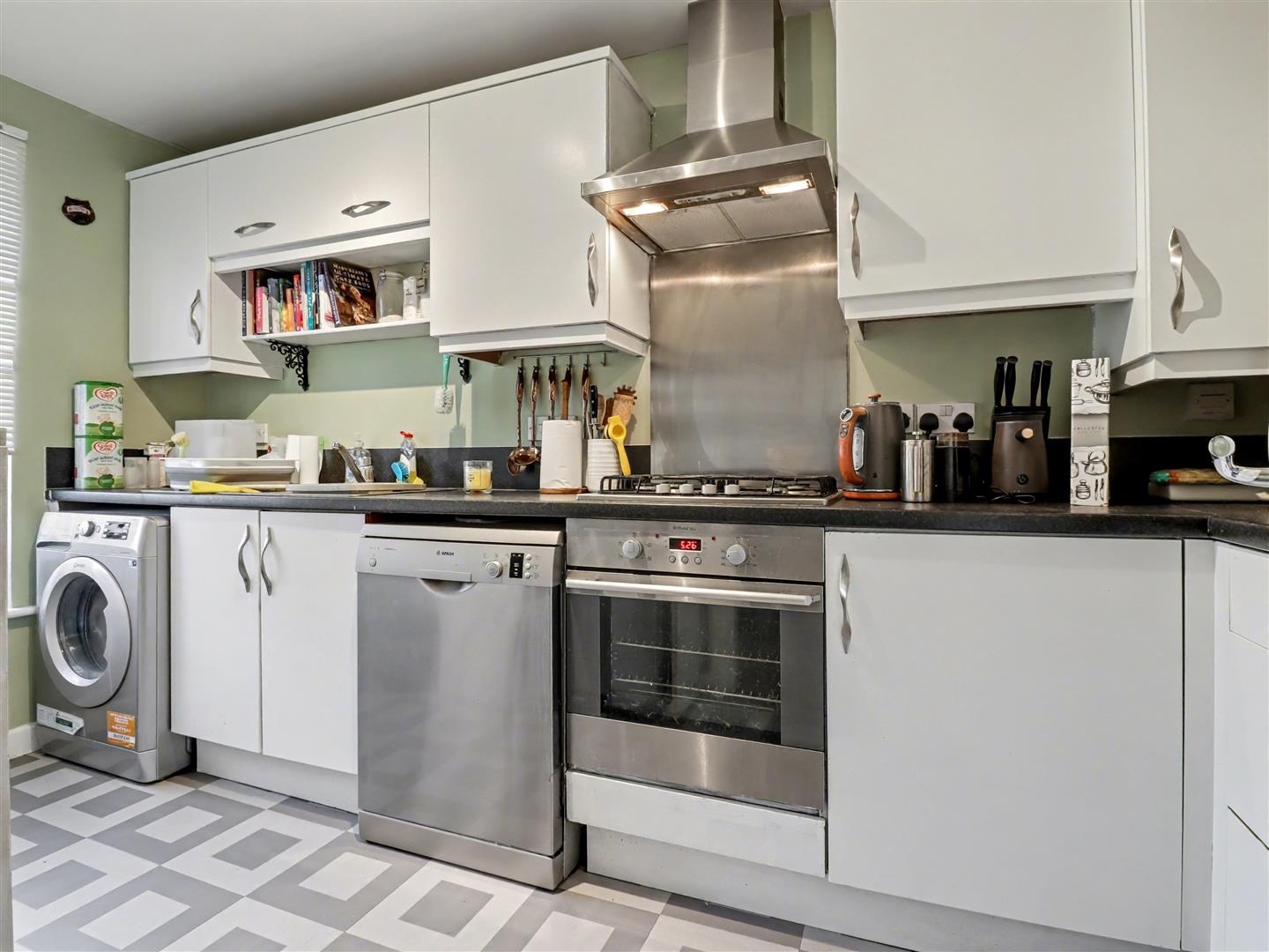 Kitchen - 3.89m x 1.91m (12'9 x 6'3) - Sealed unit double glazed window to front, fitted range of wall and base units with work tops over, sink and drainer, fitted oven and hob with extractor over, pluming for washing machine, space for fridge, radiator.