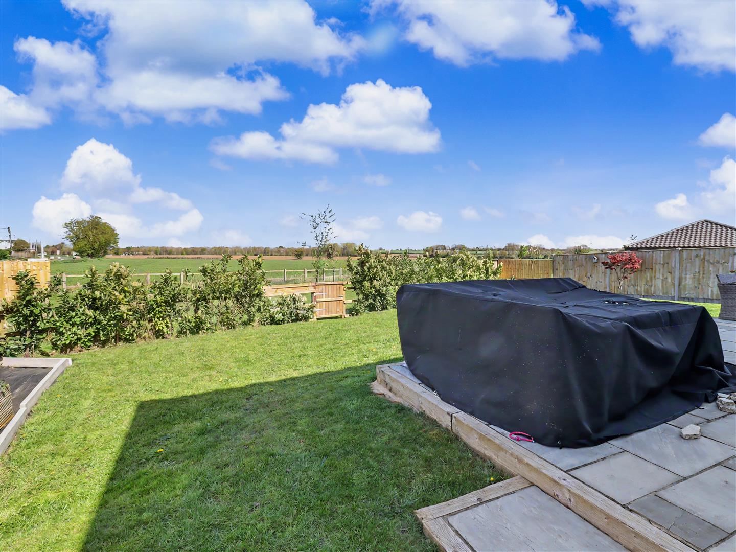 Outside - Shared gravel driveway leading to the garage, side parking and frontage. Gated to the rear garden. Rear garden has been landscaped with raised Indian sandstone patio, sleeper edged with sleeper edged border. Laurel hedge to the bottom border with lawn inset. Fantastic views over the open farmland. Garage is attached to the neighbouring garage. Up and over door and is a single.