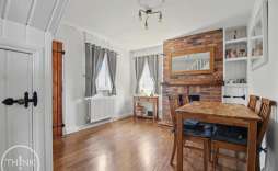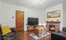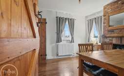 Dining Room - 4.38 x 3.30 (14'4" x 10'9") - Laminate wood flooring, stairs to first floor, wood burner with brick surround, radiator, double glazed window to rear, door to rear lobby, door to kitchen, under stairs storage cupboard.