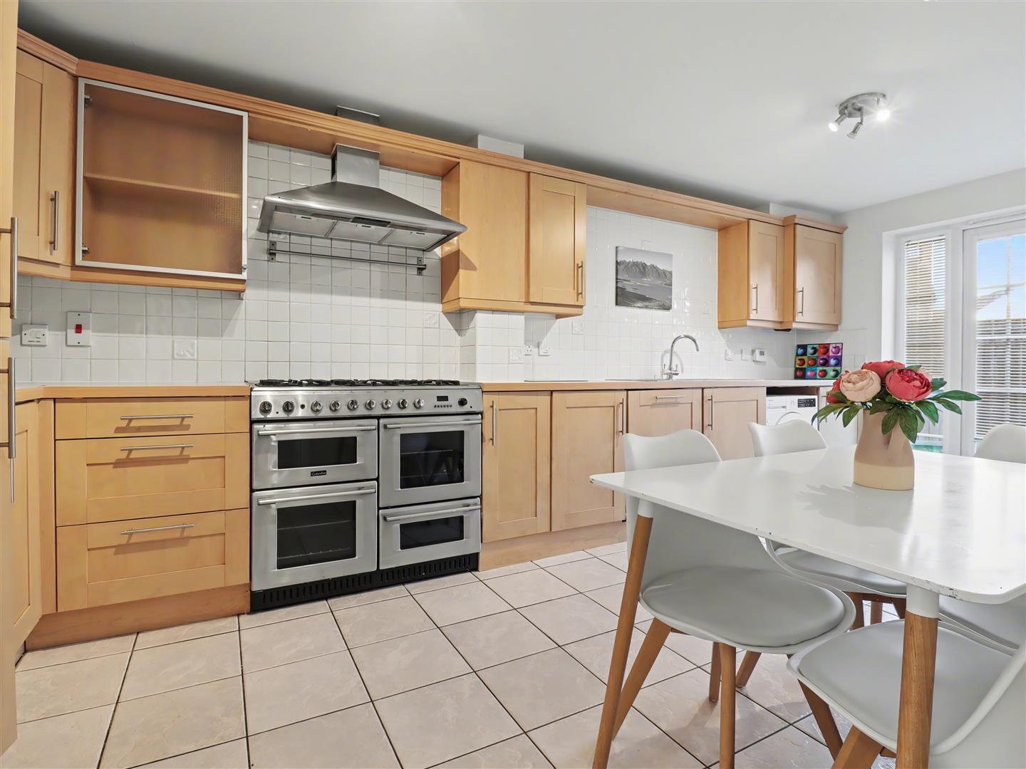 Kitchen/Breakfast Room - 2.74m x 5.49m (9'0 x 18'0) - Sealed unit double glazed double doors out to the rear garden, range of base and wall mounted units, space for range style cooker, splash backs, integrated dishwasher and fridge/freezer. Radiator and plenty of space for a breakfast table. Tiled floor.