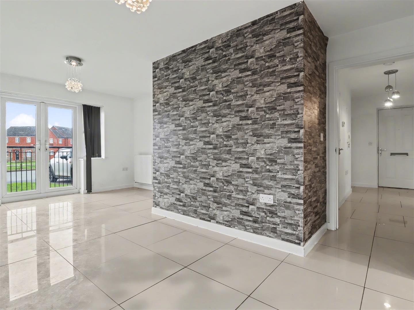Open Plan Sitting/Dining Room - 5.94m max x 3.66m max (19'6 max x 12'0 max) - Sealed unit double glazed box bay window to the side along with further window. Sealed unit double glazed double doors and windows to the front. Radiator and feature wall opening to the kitchen.